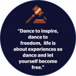 A: “Dance to inspire, dance to freedom,  life is about experiences so dance and let yourself become free.