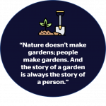 D: “Nature doesn't make gardens; people make garden, and the story of a garden is always the story of a person.