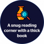 E: A snug reading corner with a thick book