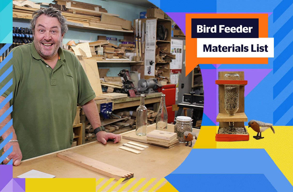 You can find all the materials you'll need below. We'll give you a week to gather all your supplies and then we’ll send you Dave Wellman’s final tutorial for building a bird feeder.